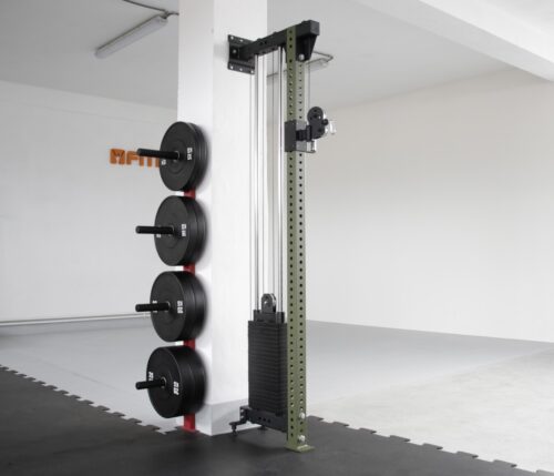 Konstrukce má výbornou stabilitu, jelikož je pevně uchycena do stěny a podlahy. Jedná se o populární a ekonomickou volbu pro všechny, kterým nevadí vrtání, jelikož na velmi malé ploše jsou k dispozici až 3 hrazdy a jeden plnohodnotný stojan na dřepy, bench press a mnohé další cviky.