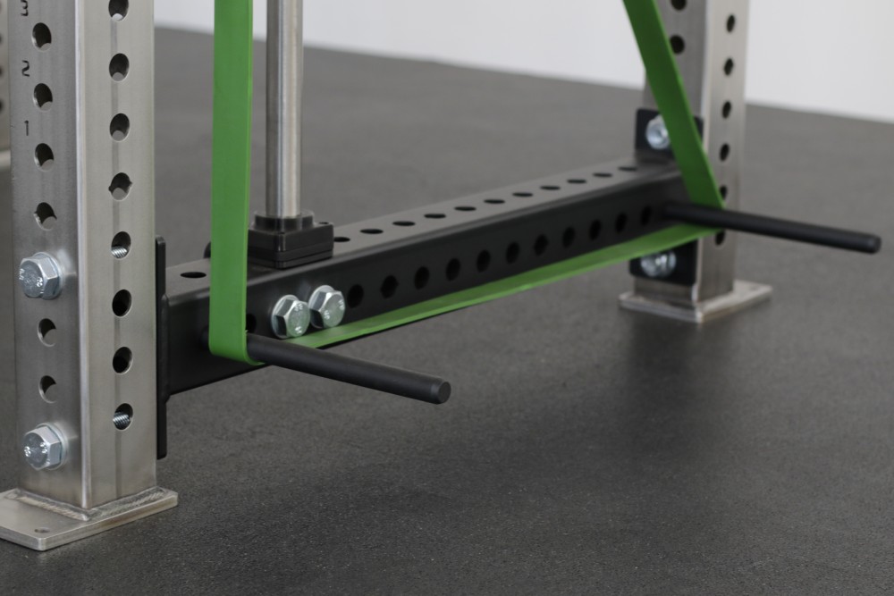 Kolík na gumy s integrovaným magnetem – zajišťuje, aby kolík při běžném používání nevypadl. Není potřeba žádné další pojistky, které by se mohly ztratit nebo jen povalovat po fitku. Použití je jednoduché: kolíky stačí zasunout do děr na stojanu nebo kleci a přehodit přes ně odporovou gumu. Tuto jednoduchost oceníte při každém tréninku – šetří čas (často se používají až 4 kolíky) a zvlášť při montáži kolíků ve vyšších polohách.